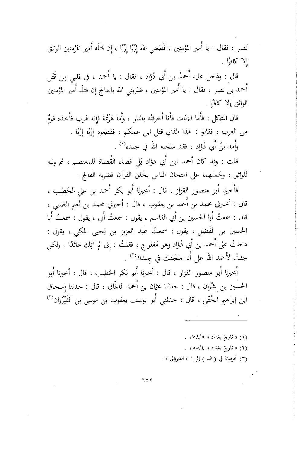أخبرنا أبو منصور القزاز، قال: أخبرنا أبو بكر الخطيب، قال: أخبرنا أبو الحسين بن بشران، قال: حدثنا عثمان بن أحمد الدقاق، قال: حدثنا إسحاق ابن إبراهيم الختلي، قال: حدثني أبو يوسف يعقوب بن موسى بن الفيرزان