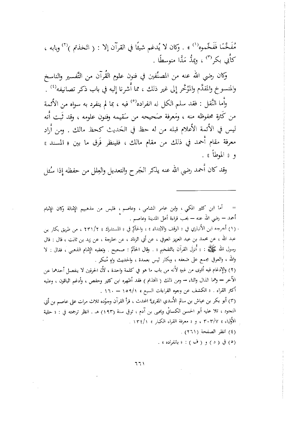 مفخماً ففخموه". وكان لا يدغم شيئاً في القرآن إلا: (اتخذتم) وبابه، كأبي بكر، ويمد مداً متوسطاً.