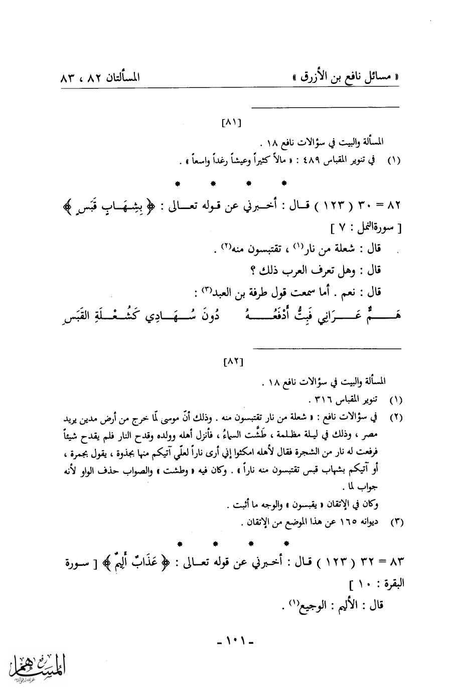 كتاب مسائل نافع بن الأزرق = غريب القرآن في شعر العرب