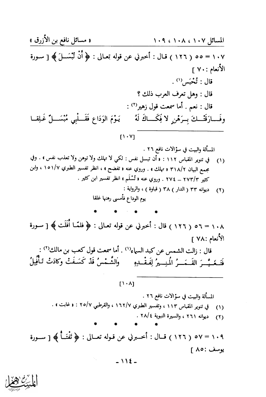 كتاب مسائل نافع بن الأزرق = غريب القرآن في شعر العرب