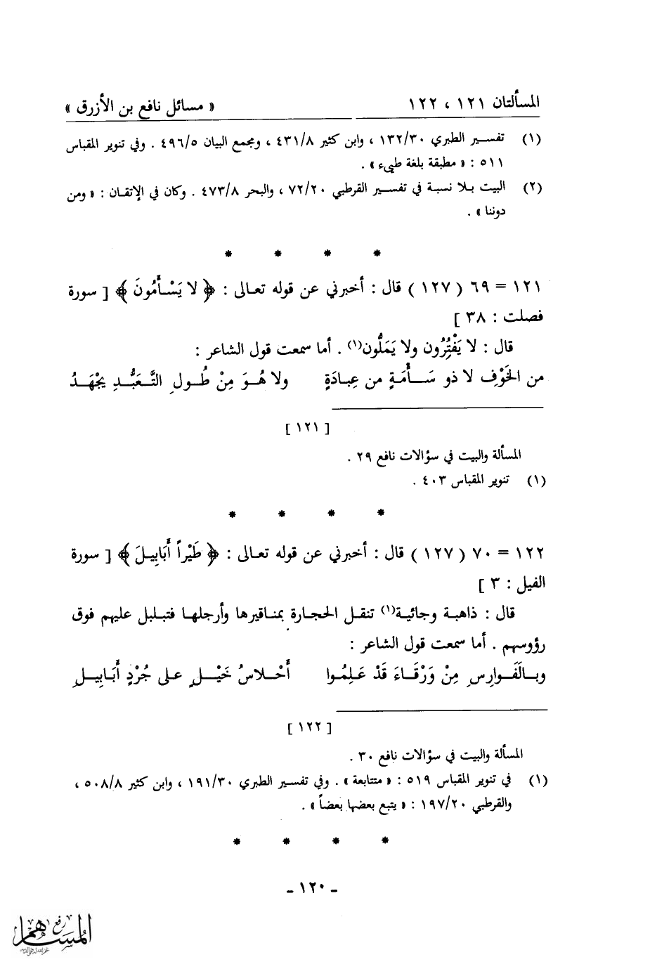 كتاب مسائل نافع بن الأزرق = غريب القرآن في شعر العرب