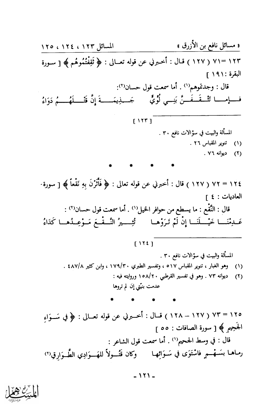 كتاب مسائل نافع بن الأزرق = غريب القرآن في شعر العرب