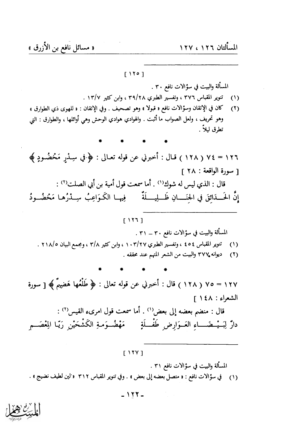 كتاب مسائل نافع بن الأزرق = غريب القرآن في شعر العرب