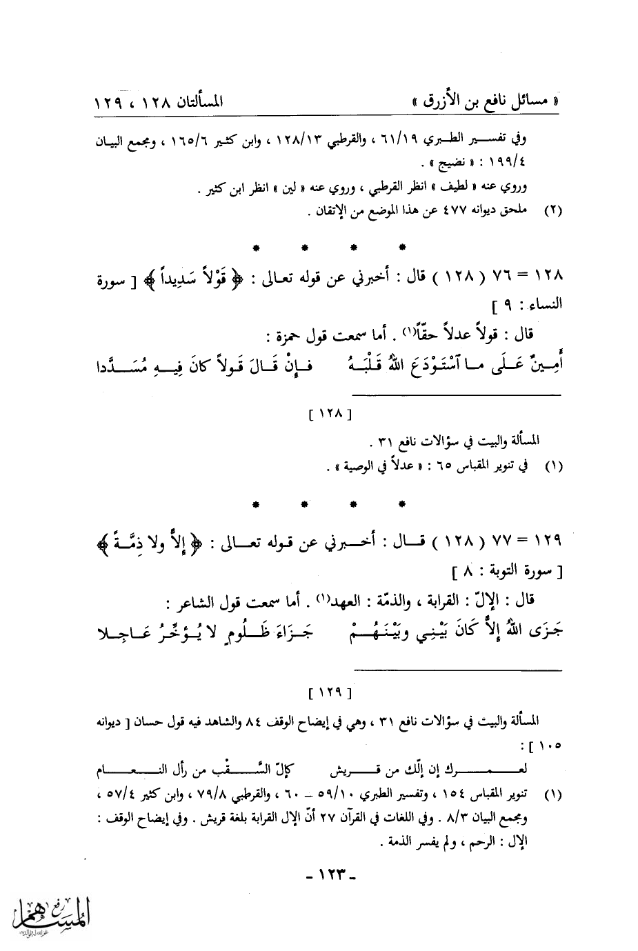 كتاب مسائل نافع بن الأزرق = غريب القرآن في شعر العرب