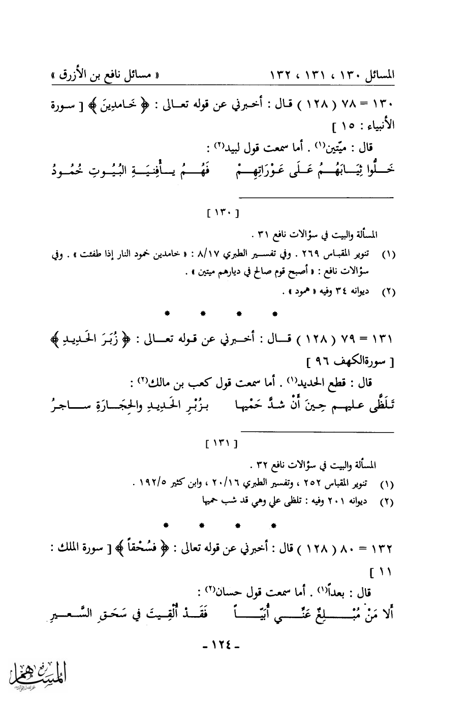 كتاب مسائل نافع بن الأزرق = غريب القرآن في شعر العرب
