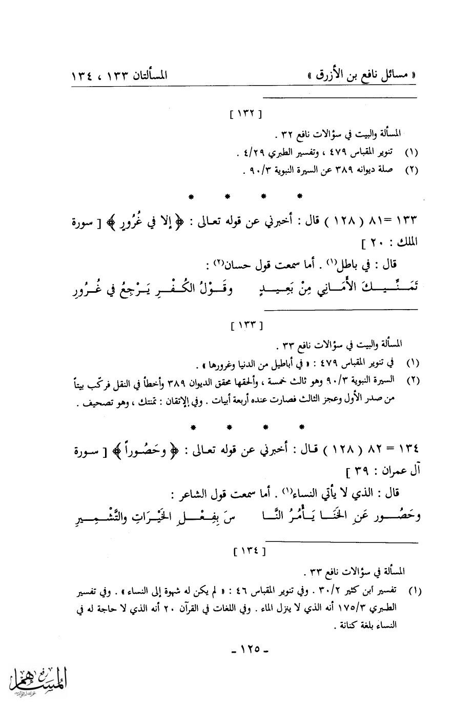كتاب مسائل نافع بن الأزرق = غريب القرآن في شعر العرب