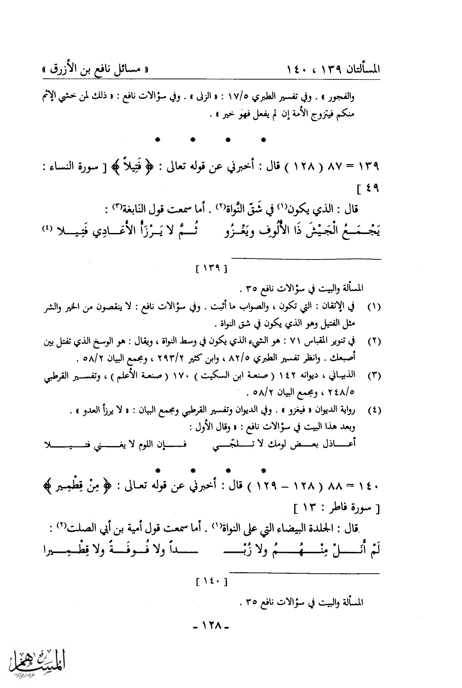 كتاب مسائل نافع بن الأزرق = غريب القرآن في شعر العرب