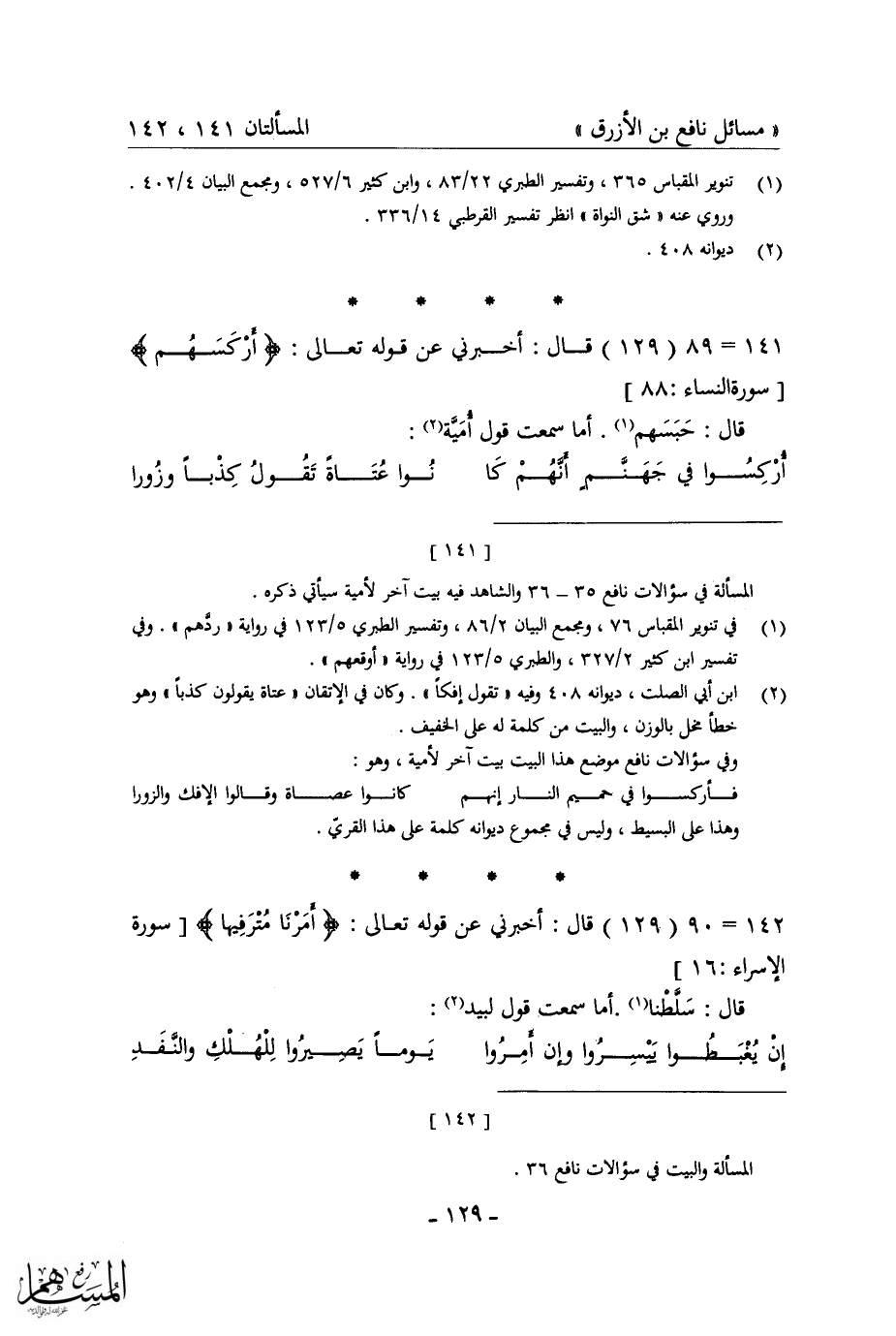 كتاب مسائل نافع بن الأزرق = غريب القرآن في شعر العرب