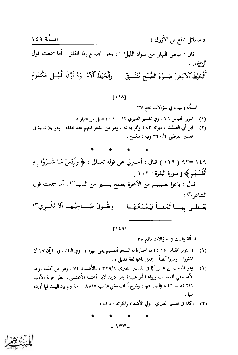كتاب مسائل نافع بن الأزرق = غريب القرآن في شعر العرب