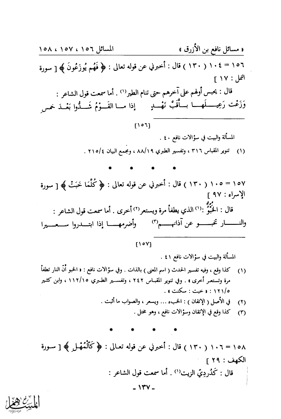 كتاب مسائل نافع بن الأزرق = غريب القرآن في شعر العرب