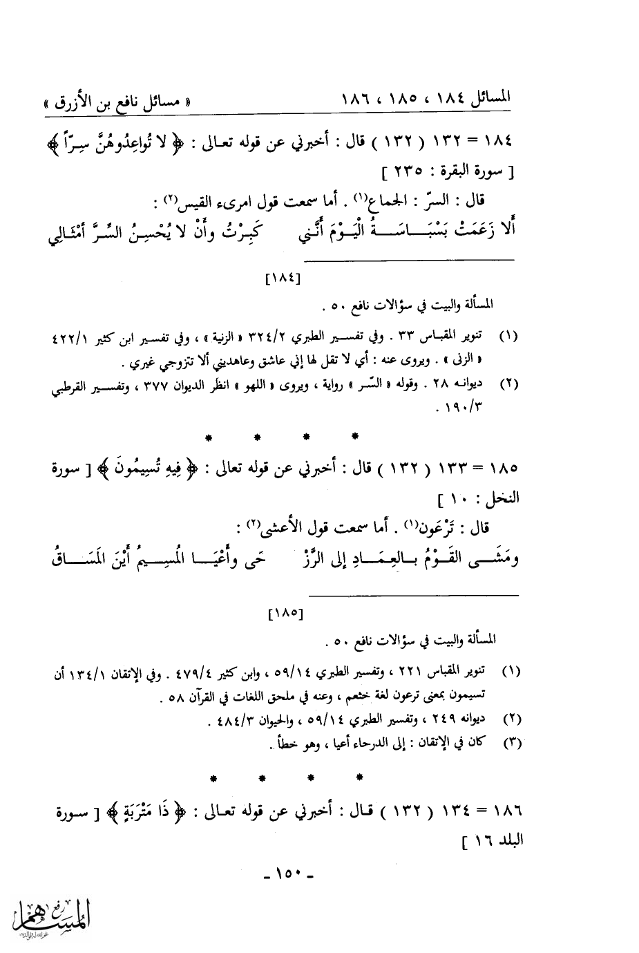 كتاب مسائل نافع بن الأزرق = غريب القرآن في شعر العرب