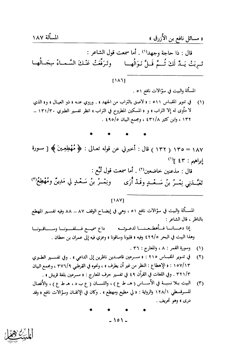 كتاب مسائل نافع بن الأزرق = غريب القرآن في شعر العرب