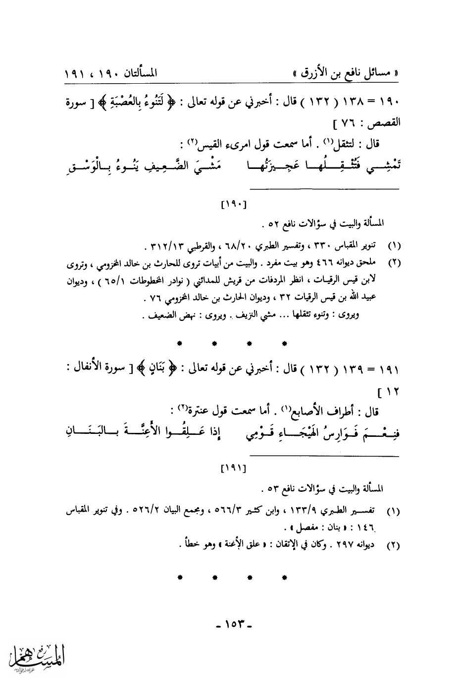 كتاب مسائل نافع بن الأزرق = غريب القرآن في شعر العرب