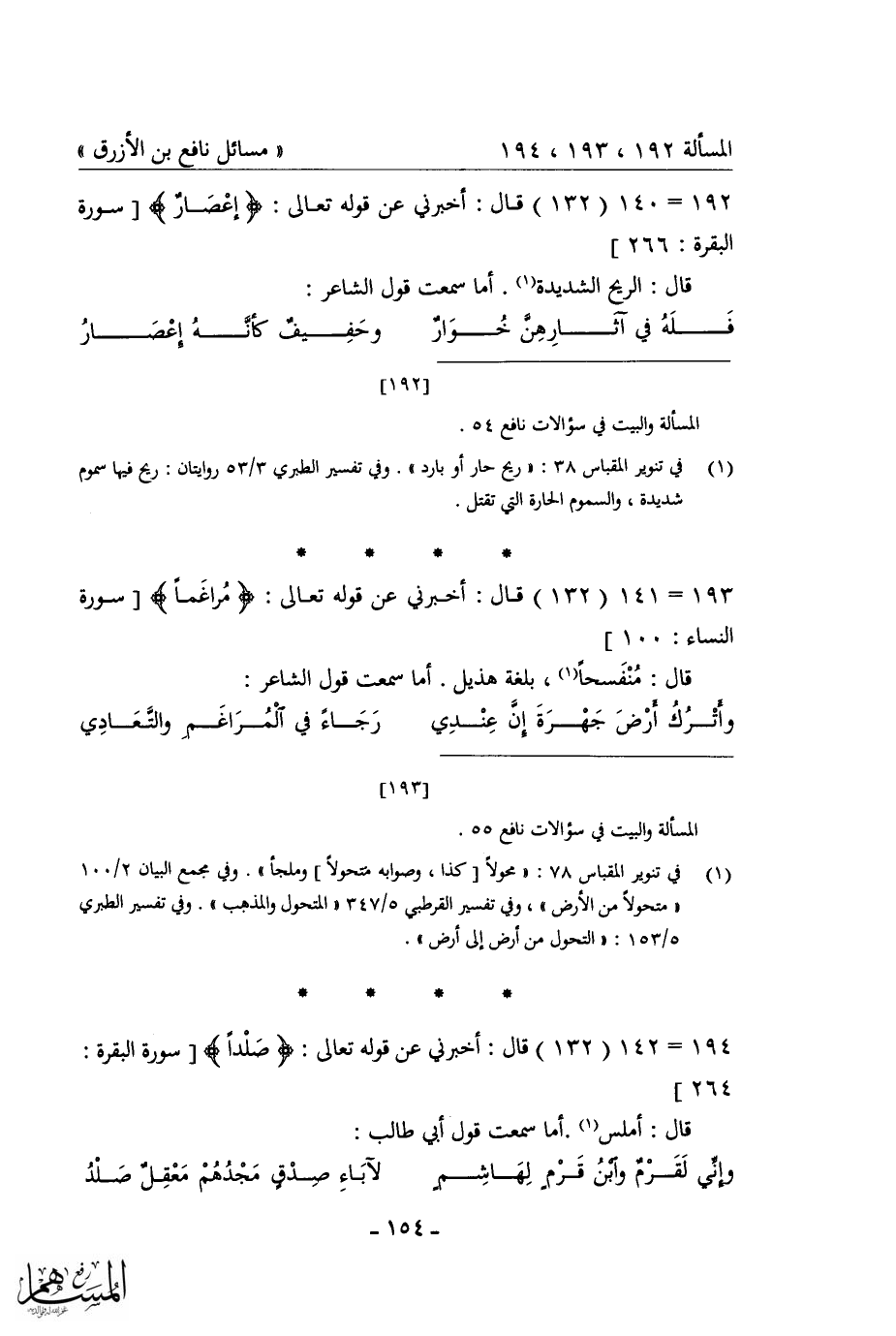 كتاب مسائل نافع بن الأزرق = غريب القرآن في شعر العرب