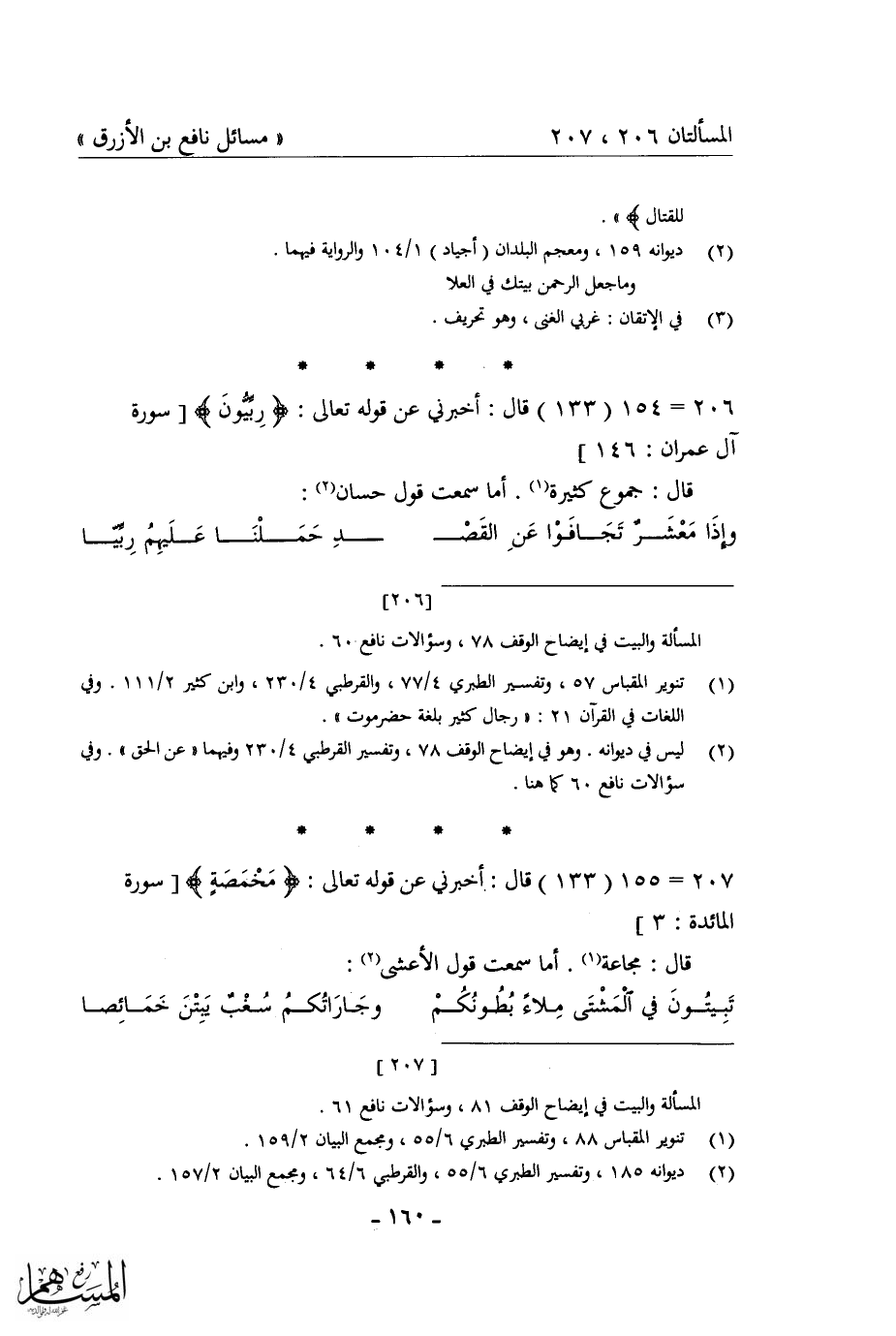 كتاب مسائل نافع بن الأزرق = غريب القرآن في شعر العرب