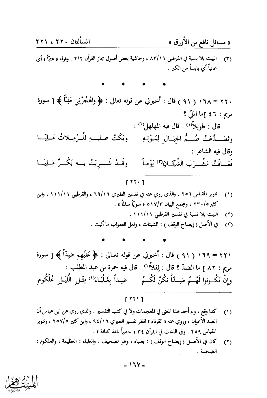 كتاب مسائل نافع بن الأزرق = غريب القرآن في شعر العرب
