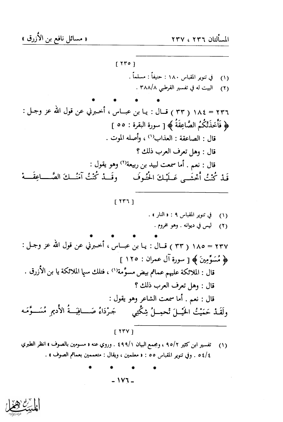 كتاب مسائل نافع بن الأزرق = غريب القرآن في شعر العرب
