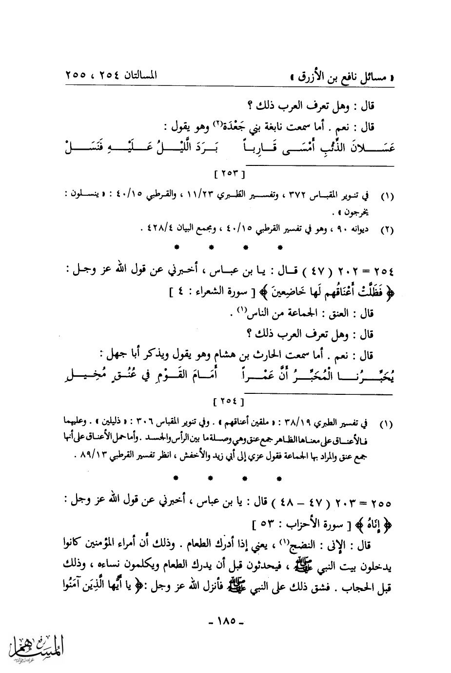 كتاب مسائل نافع بن الأزرق = غريب القرآن في شعر العرب