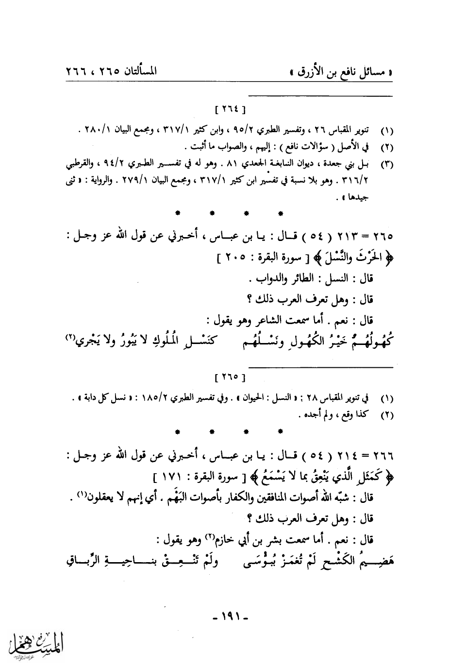 كتاب مسائل نافع بن الأزرق = غريب القرآن في شعر العرب