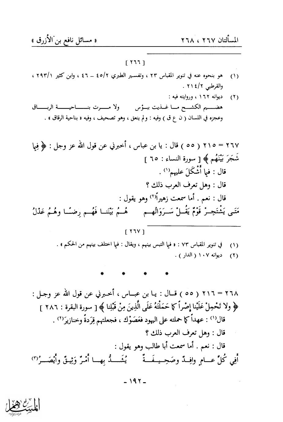 كتاب مسائل نافع بن الأزرق = غريب القرآن في شعر العرب