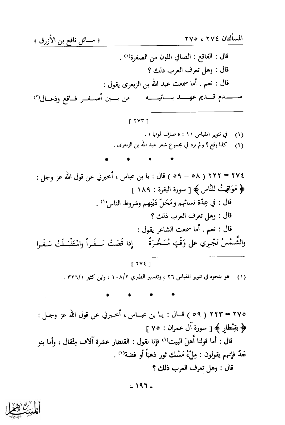 كتاب مسائل نافع بن الأزرق = غريب القرآن في شعر العرب