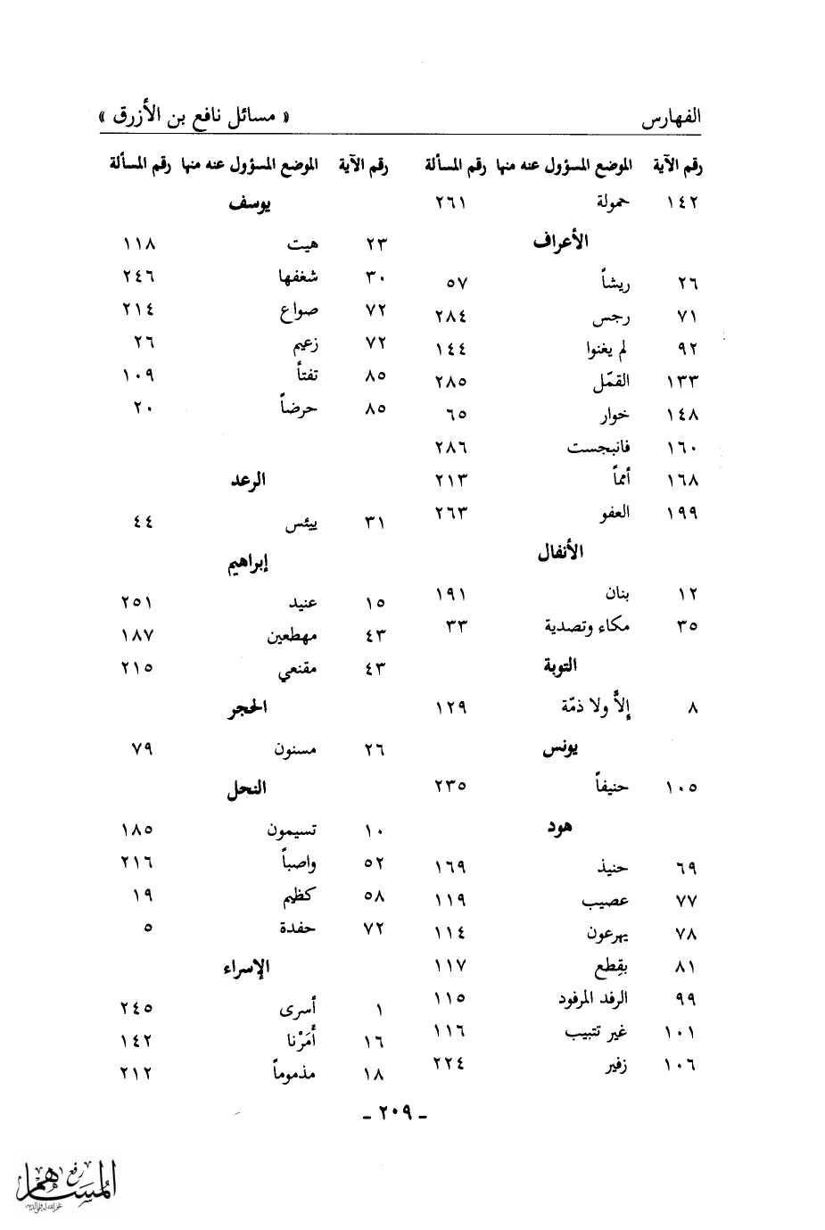 كتاب مسائل نافع بن الأزرق = غريب القرآن في شعر العرب