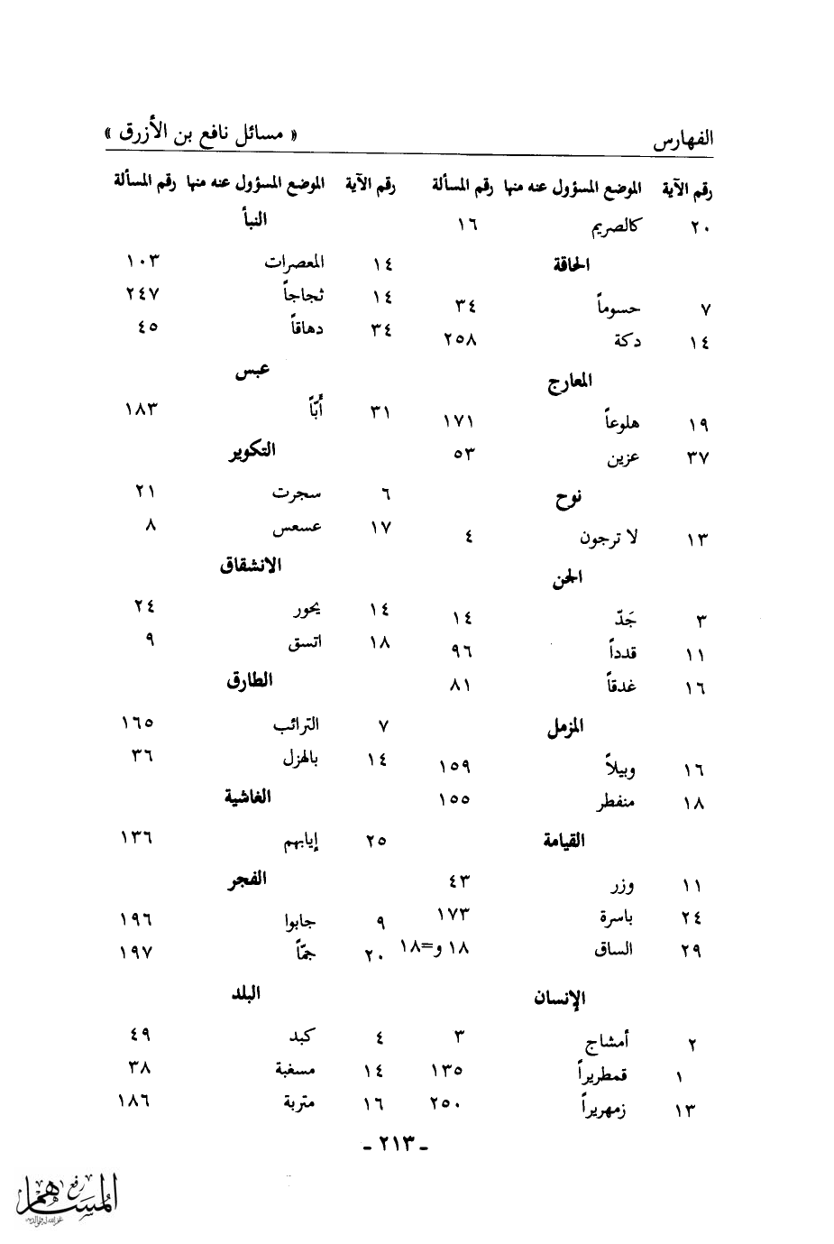 (3) كذا في (الأصل المخطوط) ، ولم ترد المسألة في (الإتقان) . يفعم: يملأ ويبالغ في ملئه. العبيط: