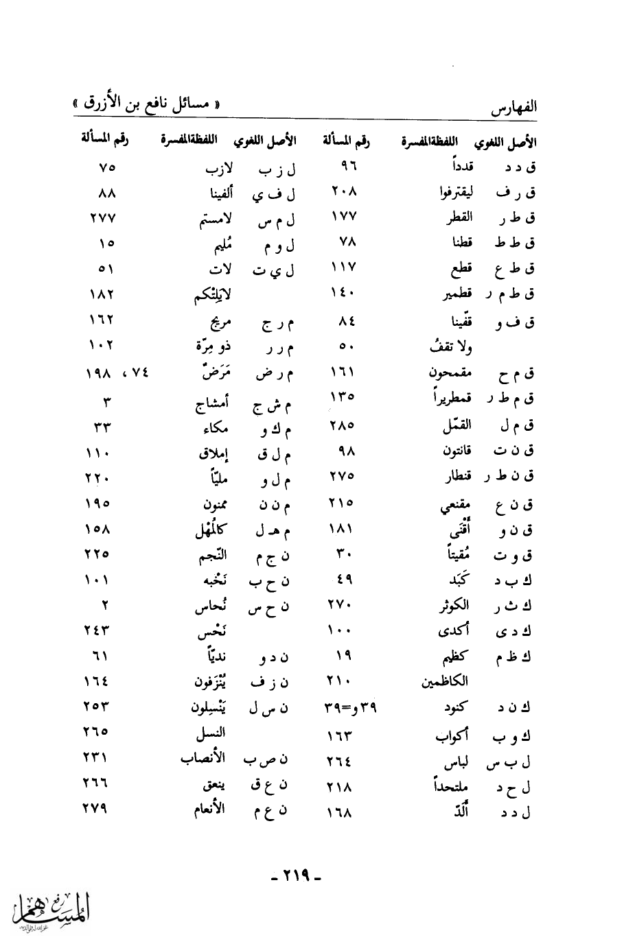 كتاب مسائل نافع بن الأزرق = غريب القرآن في شعر العرب