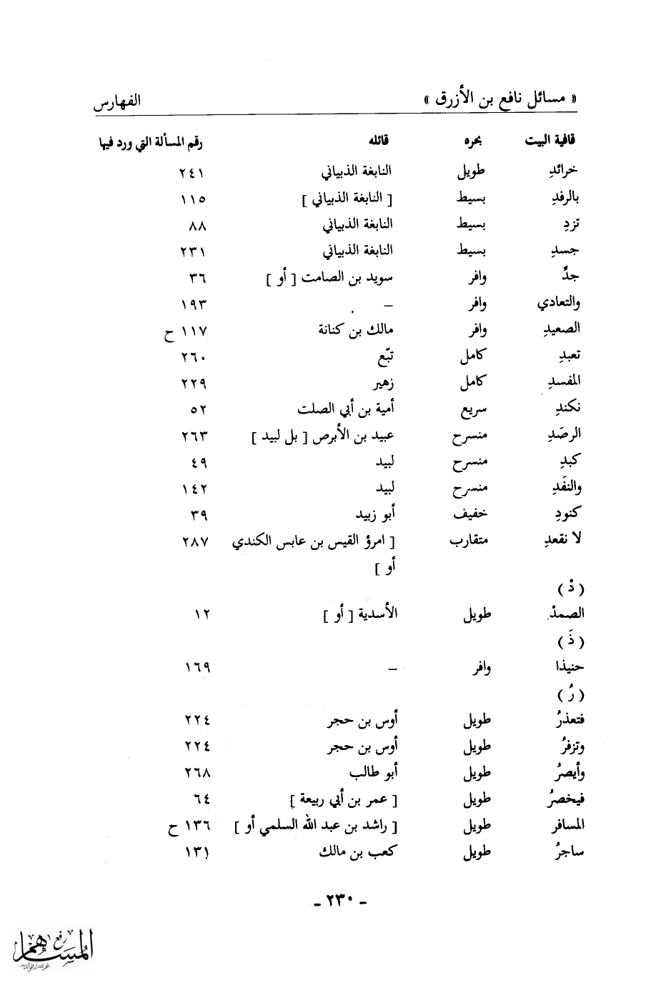 كتاب مسائل نافع بن الأزرق = غريب القرآن في شعر العرب