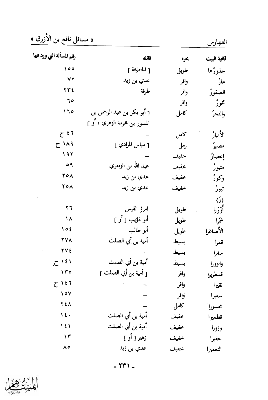 كتاب مسائل نافع بن الأزرق = غريب القرآن في شعر العرب