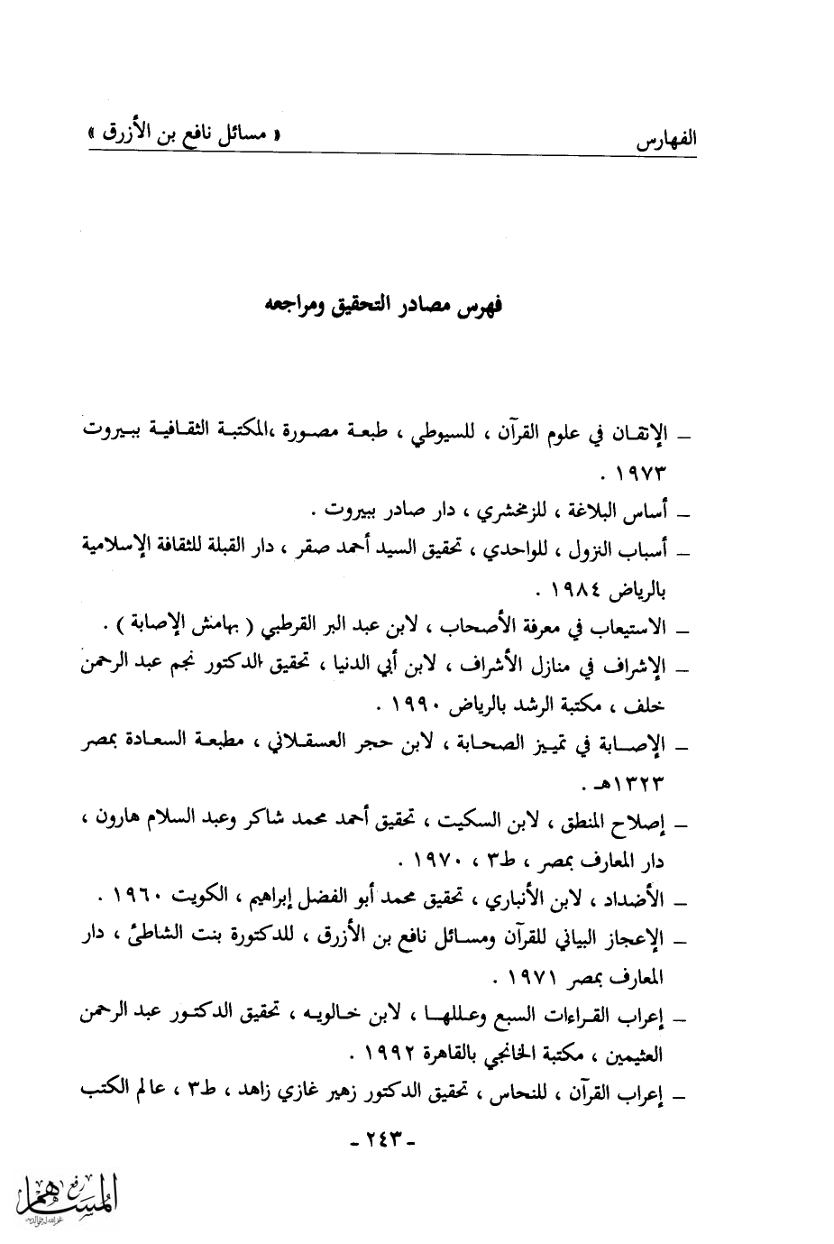 كتاب مسائل نافع بن الأزرق = غريب القرآن في شعر العرب