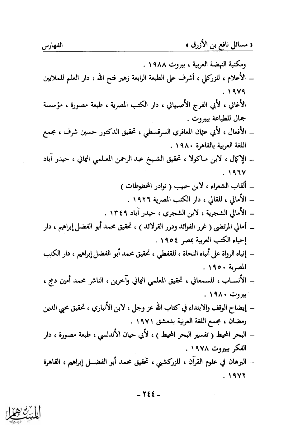 كتاب مسائل نافع بن الأزرق = غريب القرآن في شعر العرب