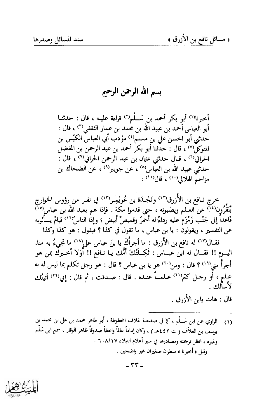 كتاب مسائل نافع بن الأزرق = غريب القرآن في شعر العرب