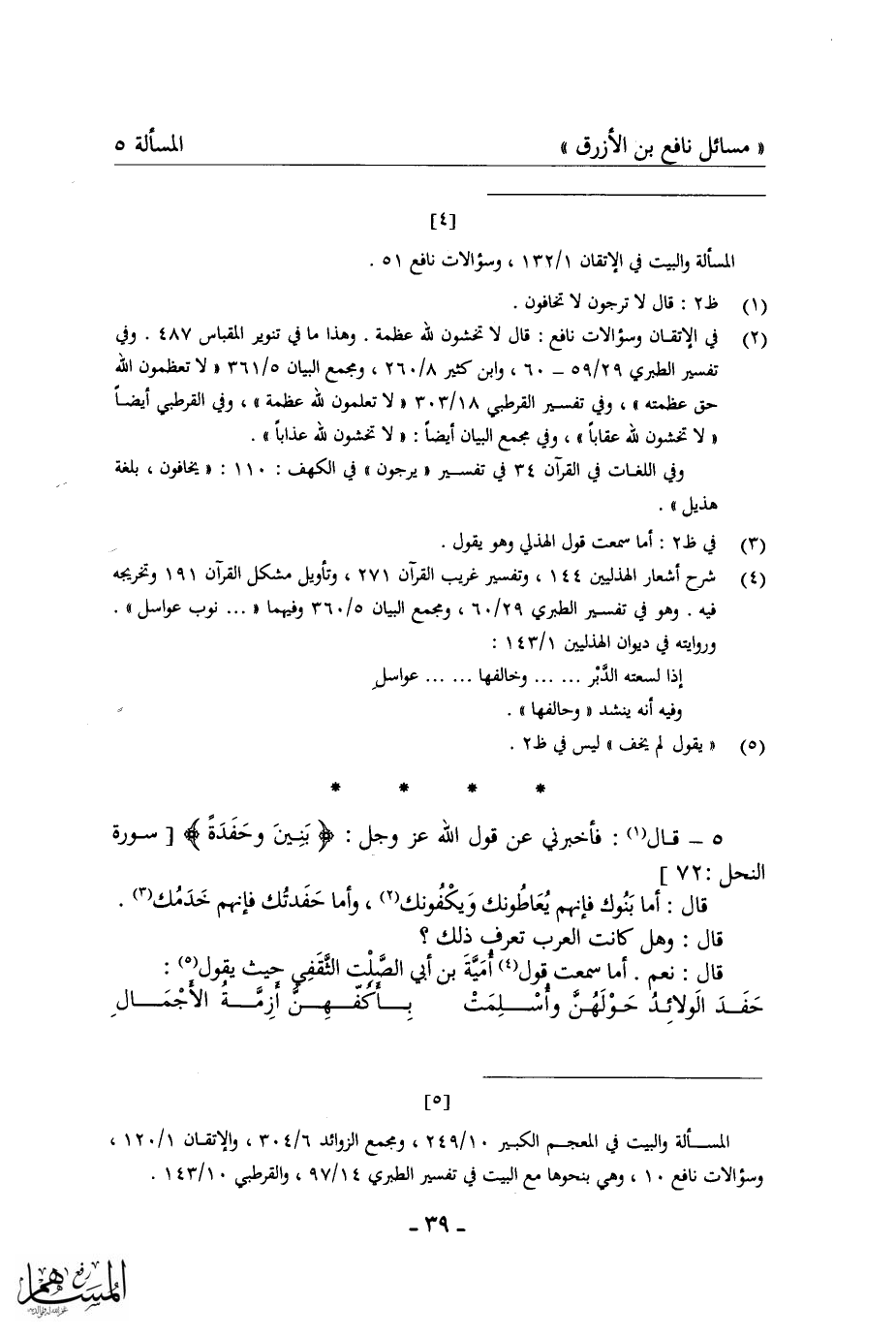 كتاب مسائل نافع بن الأزرق = غريب القرآن في شعر العرب