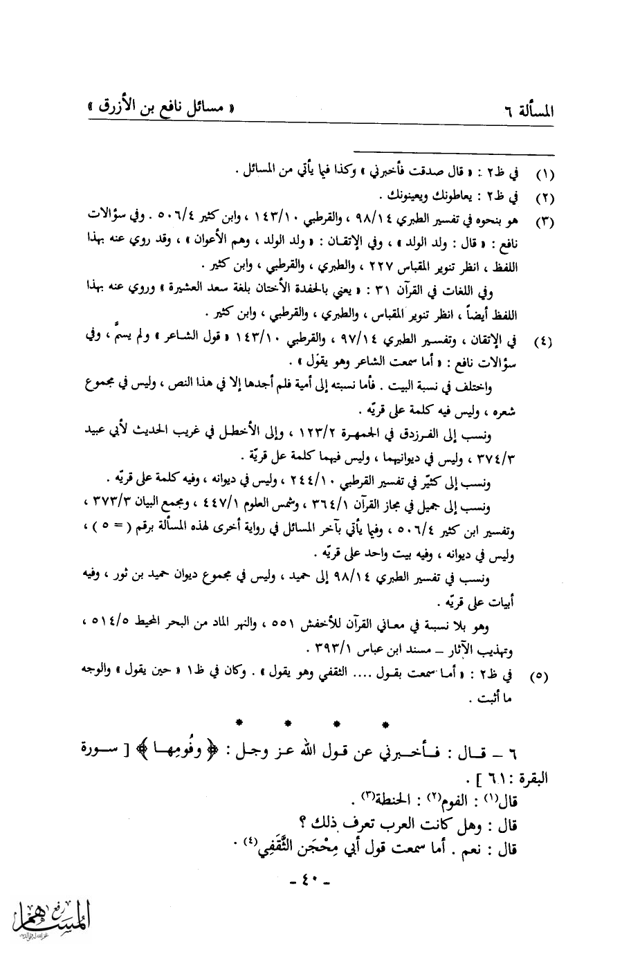 كتاب مسائل نافع بن الأزرق = غريب القرآن في شعر العرب