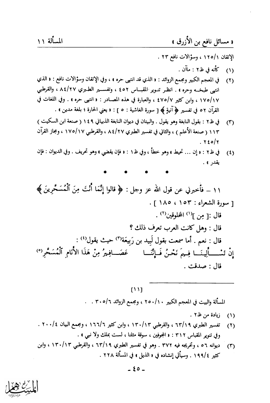كتاب مسائل نافع بن الأزرق = غريب القرآن في شعر العرب