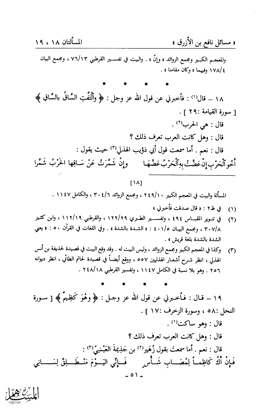 كتاب مسائل نافع بن الأزرق = غريب القرآن في شعر العرب