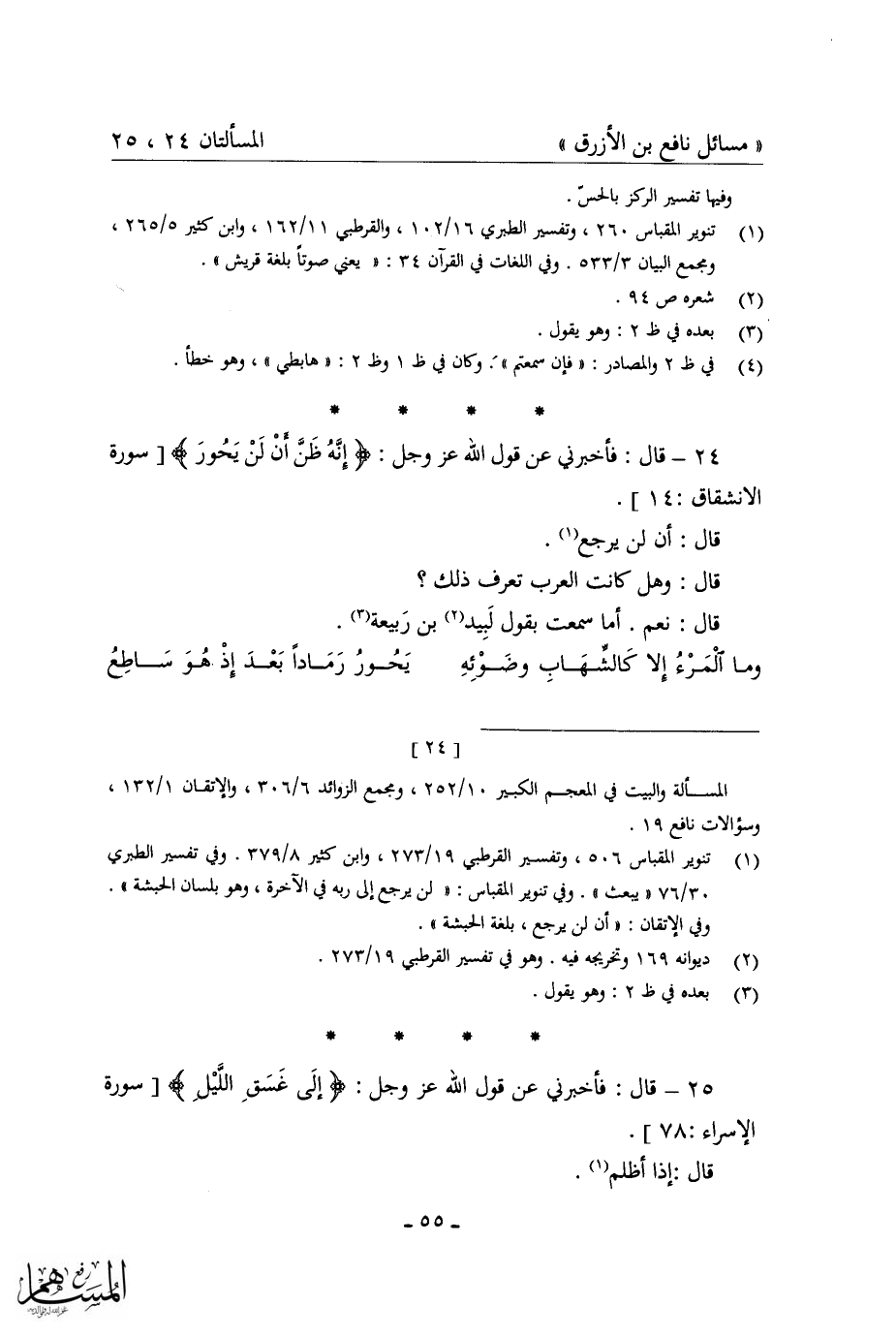 كتاب مسائل نافع بن الأزرق = غريب القرآن في شعر العرب