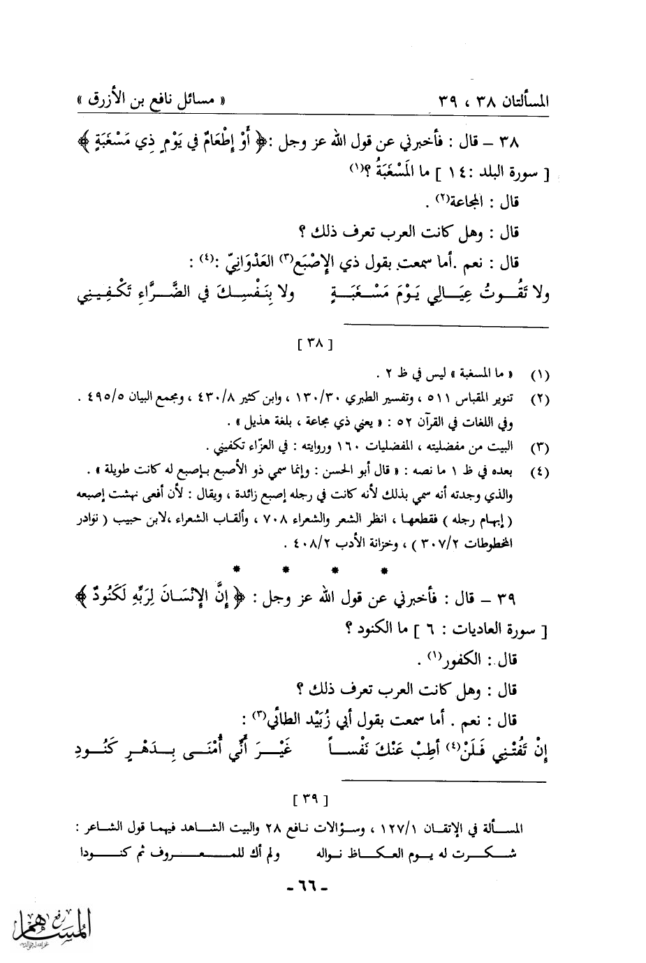 كتاب مسائل نافع بن الأزرق = غريب القرآن في شعر العرب