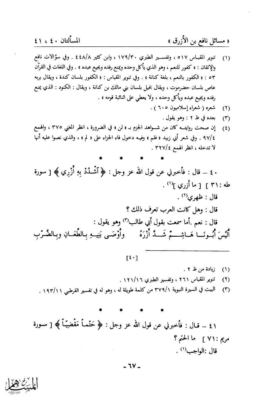 كتاب مسائل نافع بن الأزرق = غريب القرآن في شعر العرب