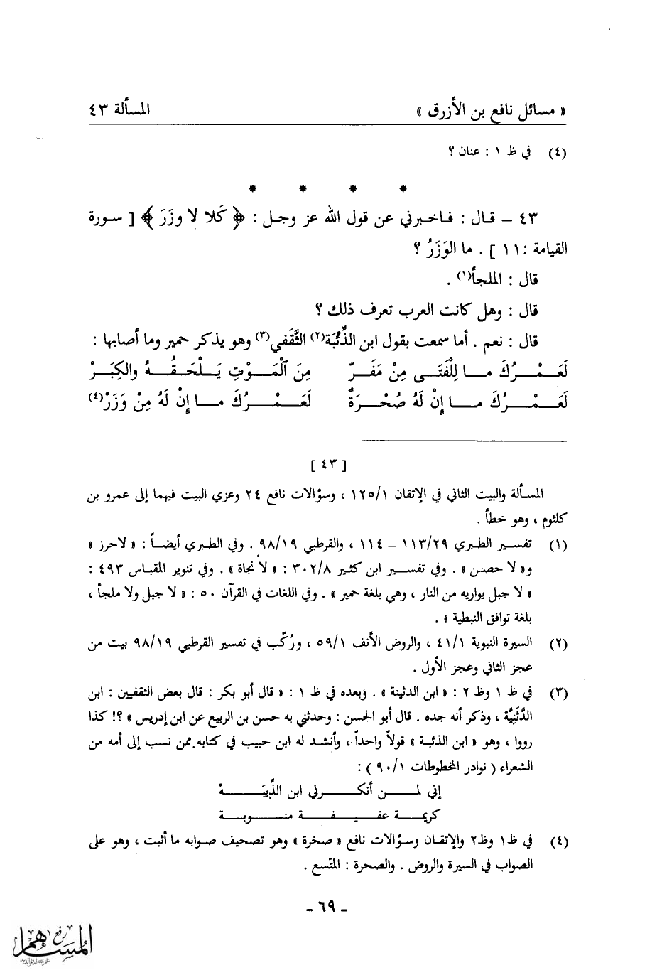 كتاب مسائل نافع بن الأزرق = غريب القرآن في شعر العرب