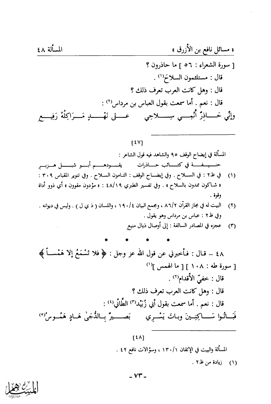 كتاب مسائل نافع بن الأزرق = غريب القرآن في شعر العرب