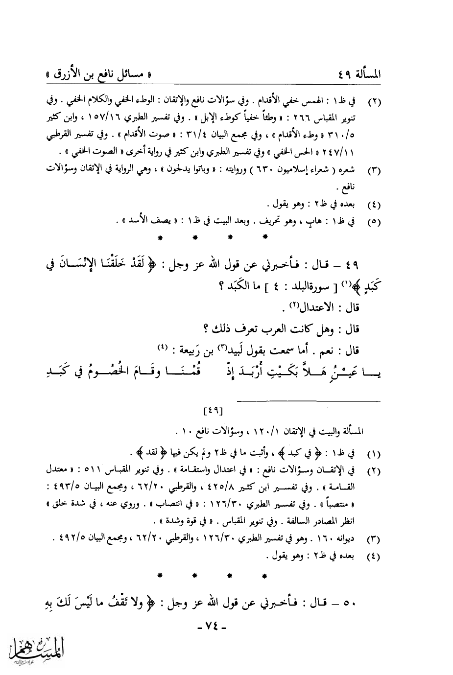 كتاب مسائل نافع بن الأزرق = غريب القرآن في شعر العرب