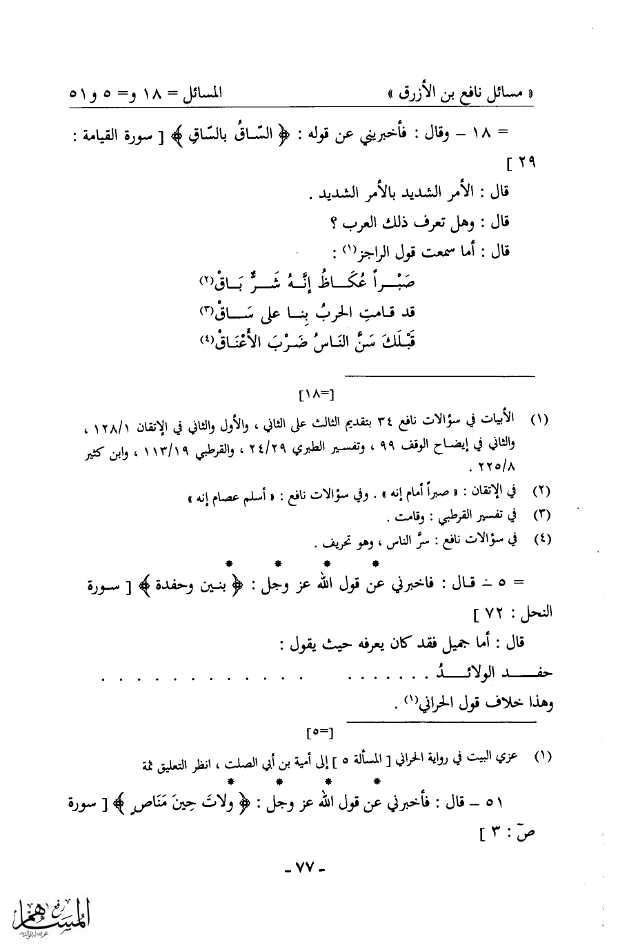 كتاب مسائل نافع بن الأزرق = غريب القرآن في شعر العرب