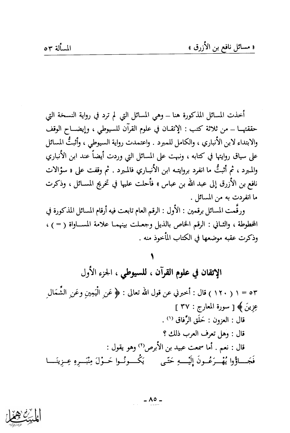 (2) كذا في (الأصل المخطوط) ، أما في (الإتقان) : 1/ 124 ورد بهذا النص: