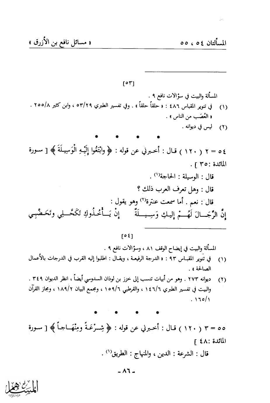 كتاب مسائل نافع بن الأزرق = غريب القرآن في شعر العرب