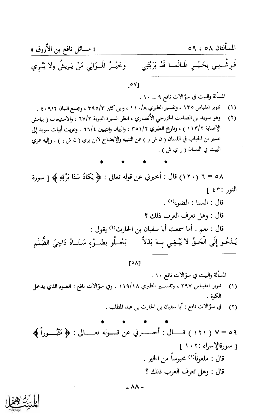 كتاب مسائل نافع بن الأزرق = غريب القرآن في شعر العرب