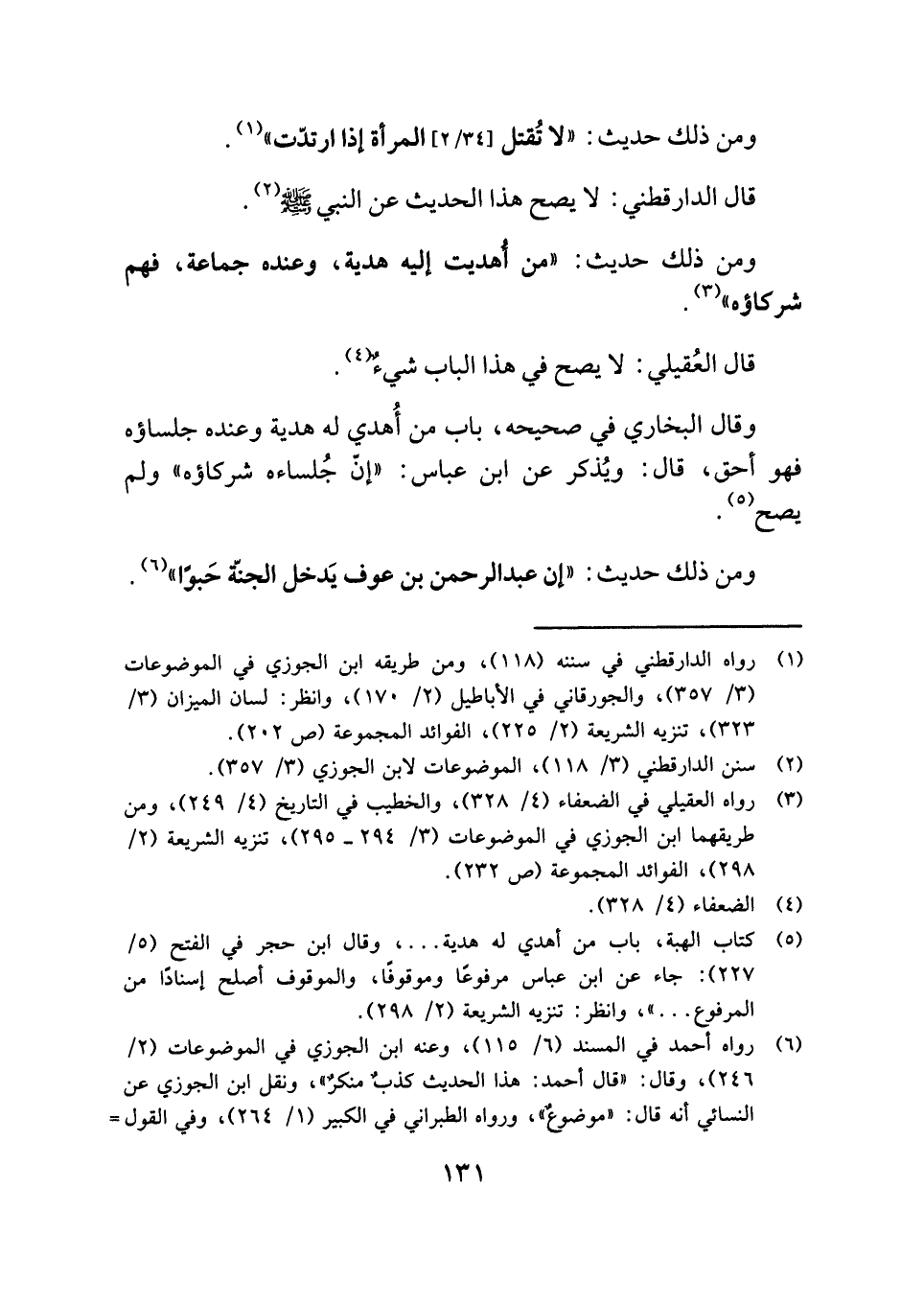(¬١) رواه الدارقطني في سننه (١١٨)، ومن طريقه ابن الجوزي في الموضوعات (٣/ ٣٥٧)، والجورقاني في الأباطيل (٢/ ١٧٠)، وانظر: لسان الميزان (٣/ ٣٢٣)، تنزيه الشريعة (٢/ ٢٢٥)، الفوائد المجموعة (ص ٢٠٢).