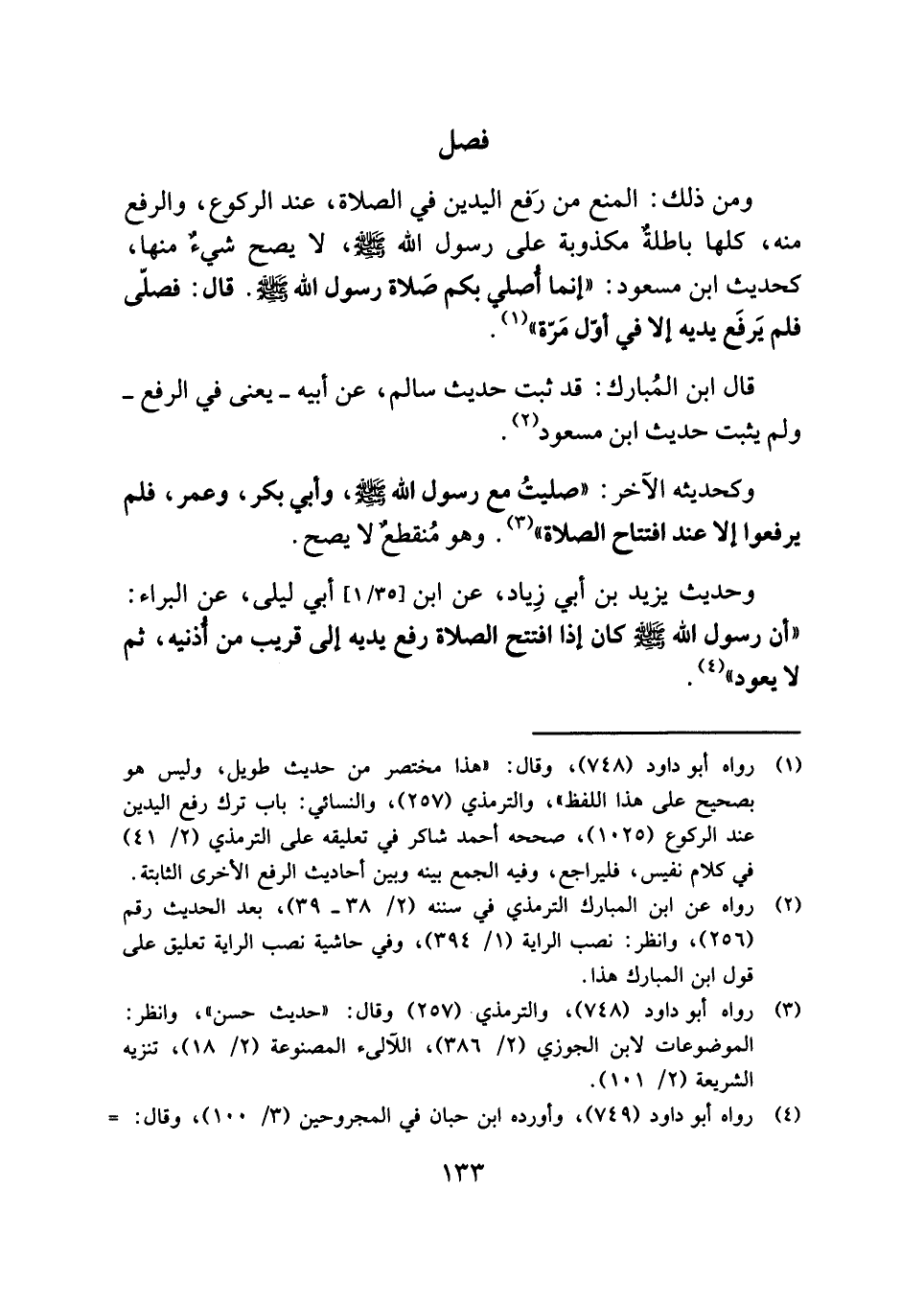 (¬٢) رواه عن ابن المبارك الترمذي في سننه (٢/ ٣٨ - ٣٩)، بعد الحديث رقم (٢٥٦)، وانظر: نصب الراية (١/ ٣٩٤)، وفي حاشية نصب الراية تعليق على قول ابن المبارك هذا.