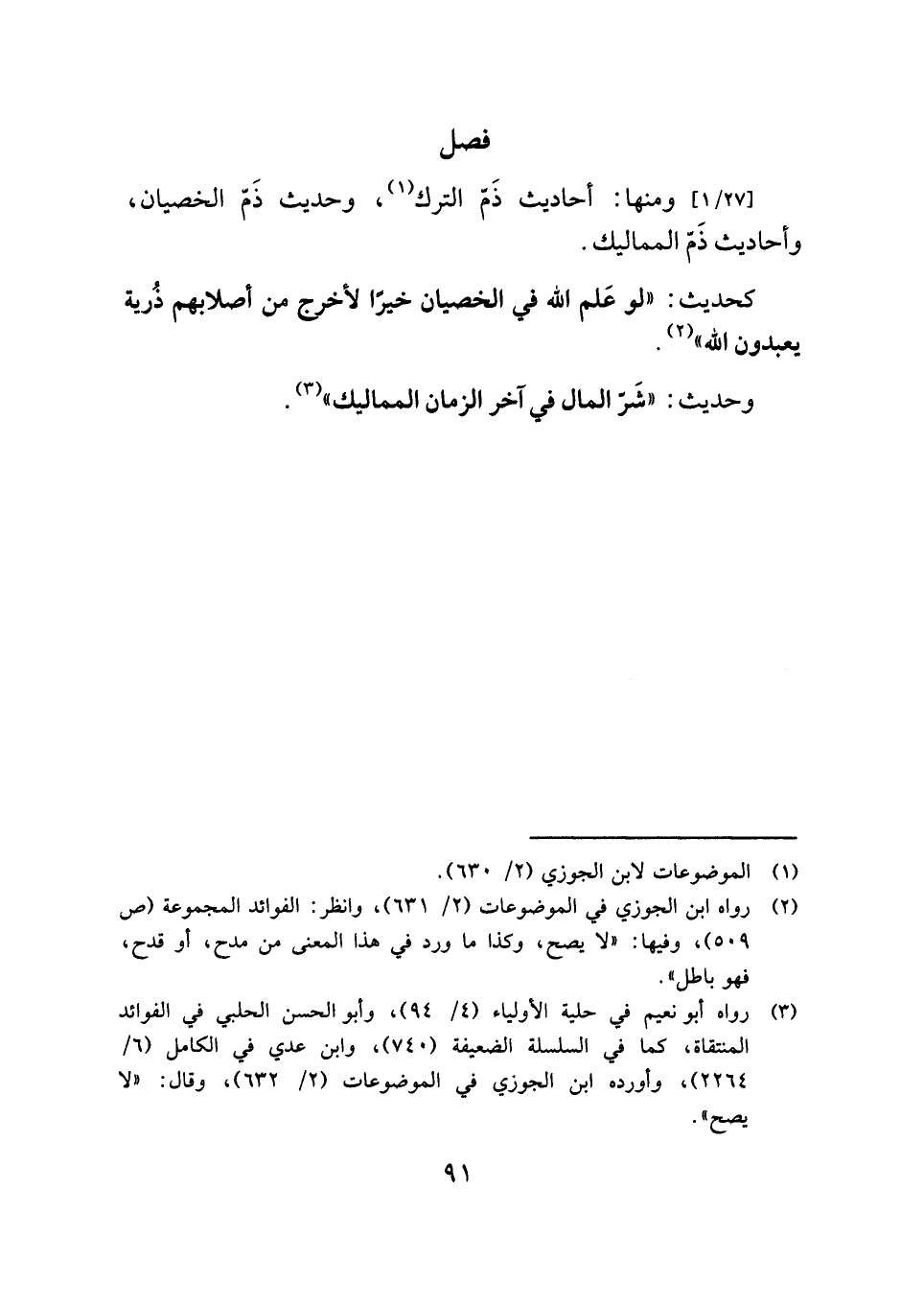 ومنها: أحاديث ذَمّ الترك (¬١)، وحديث ذَمّ الخصيان، وأحاديث ذَمّ المماليك.